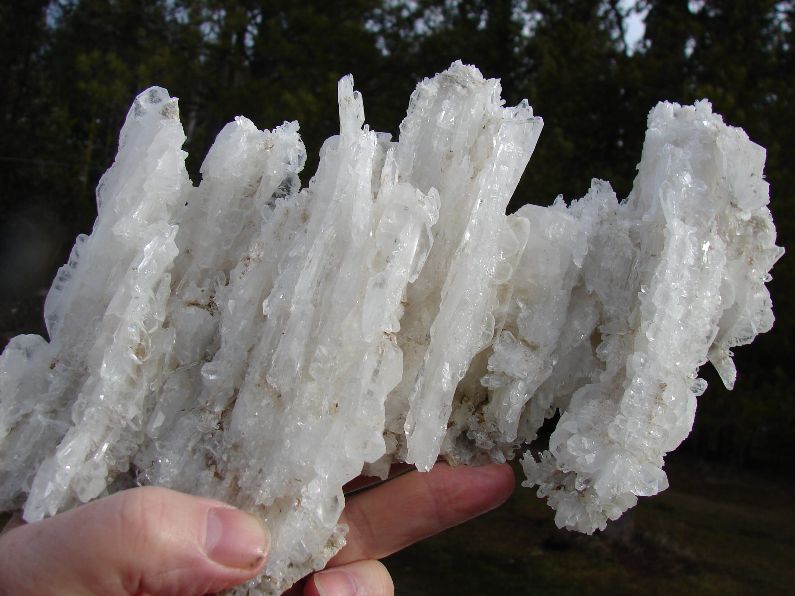Quartz crystals inside the host rock will rupture when the fissure opens. In a silica rich solution, this rupture will heal quickly, forming a crystal that is attached to the opposing rock walls and bridges the new opening. While the fissure continues to open steadily, the crystal will also continue to crack and heal. They are found in areas of low grade metamorphism in which cavities in the rock are growing. When these zones grow, the quartz crystals in them are broken (repeatedly), and the healing and regrowth incorporates fluid and gaseous inclusions ( the white threads). The edges of the crystals grow faster and incorporate the liquid inclusions in the center of the crystals. Read more here: https://www.geologyin.com/2018/05/what-is-faden-quartz-and-how-does-it.html