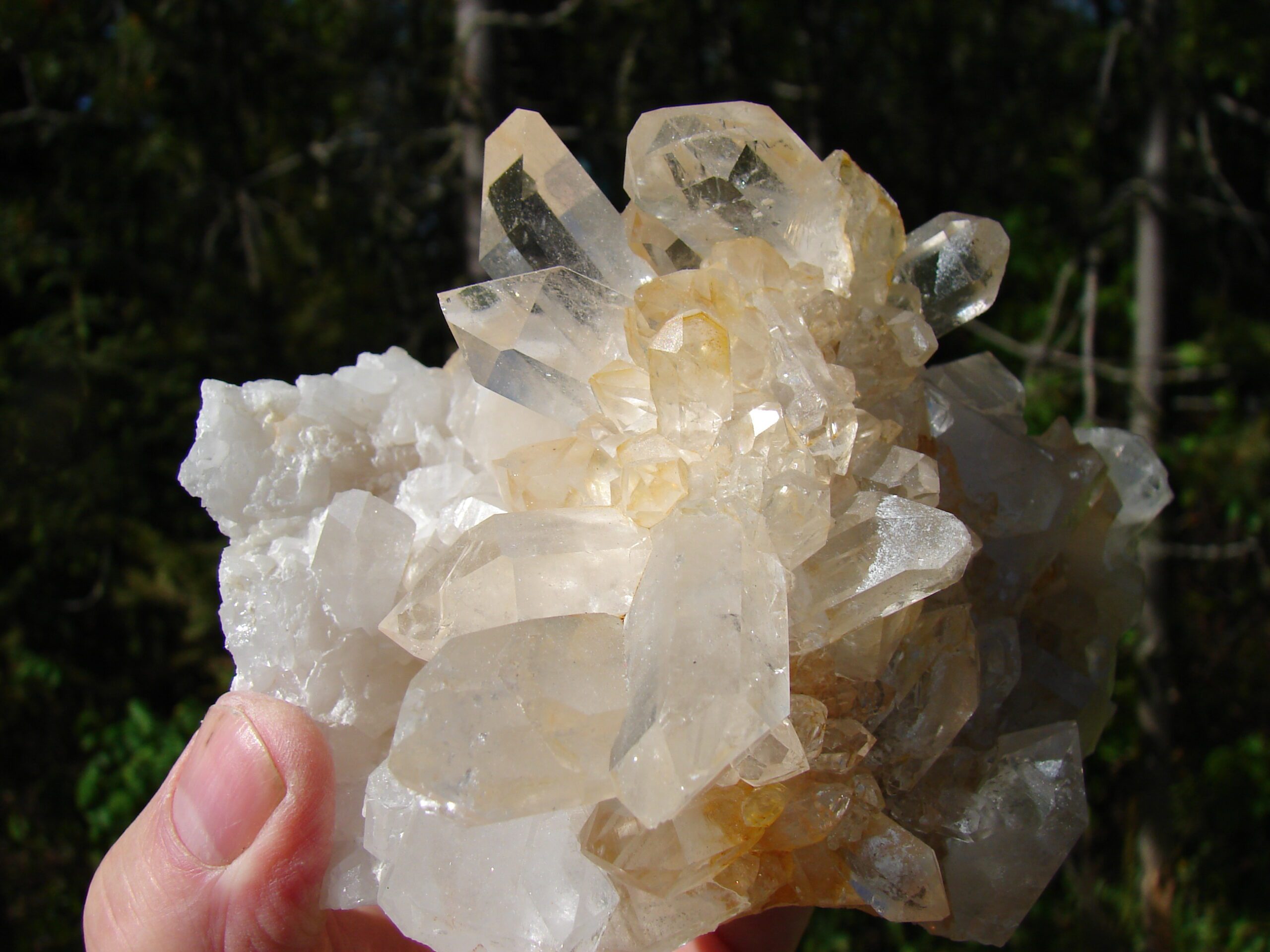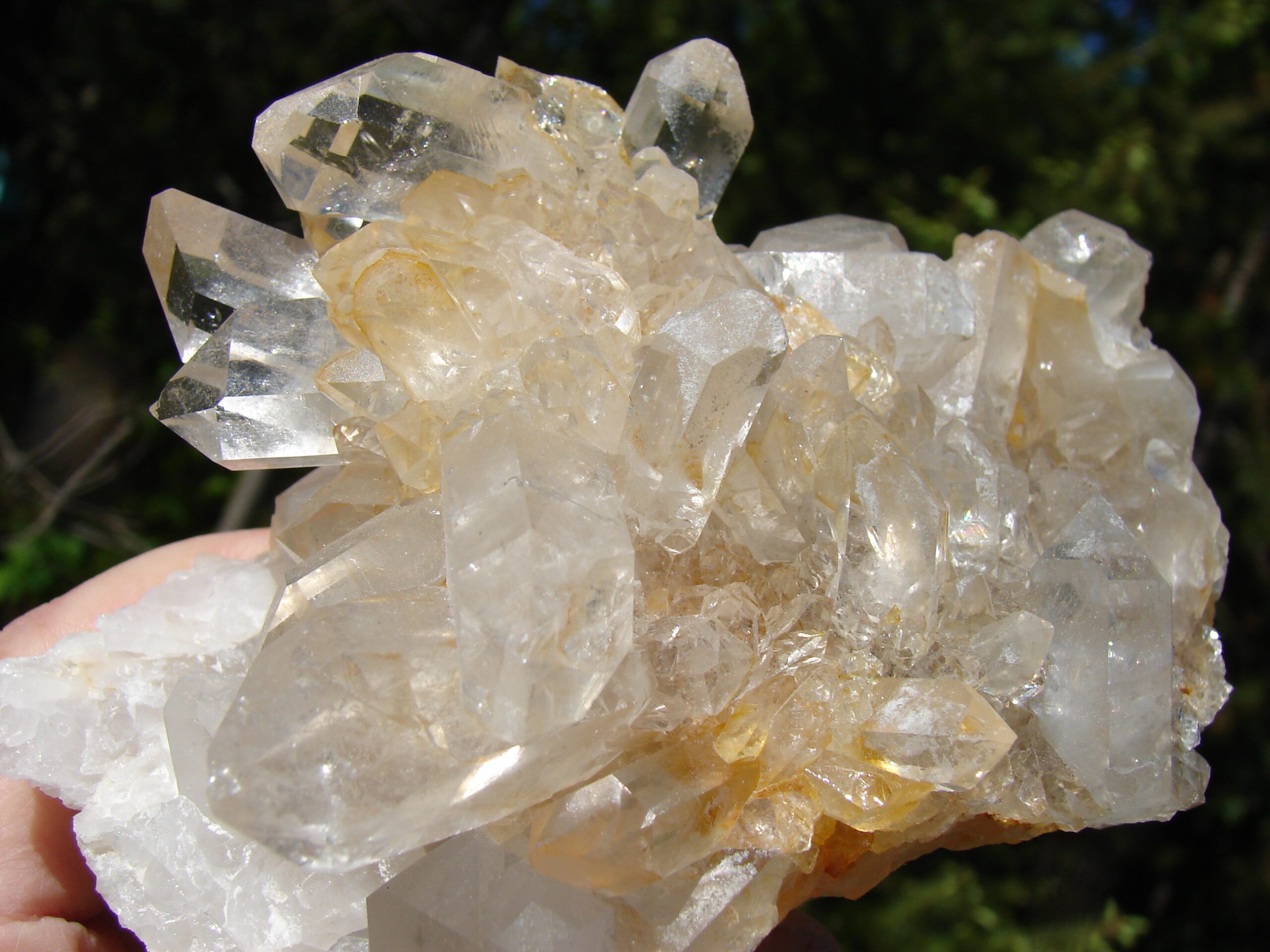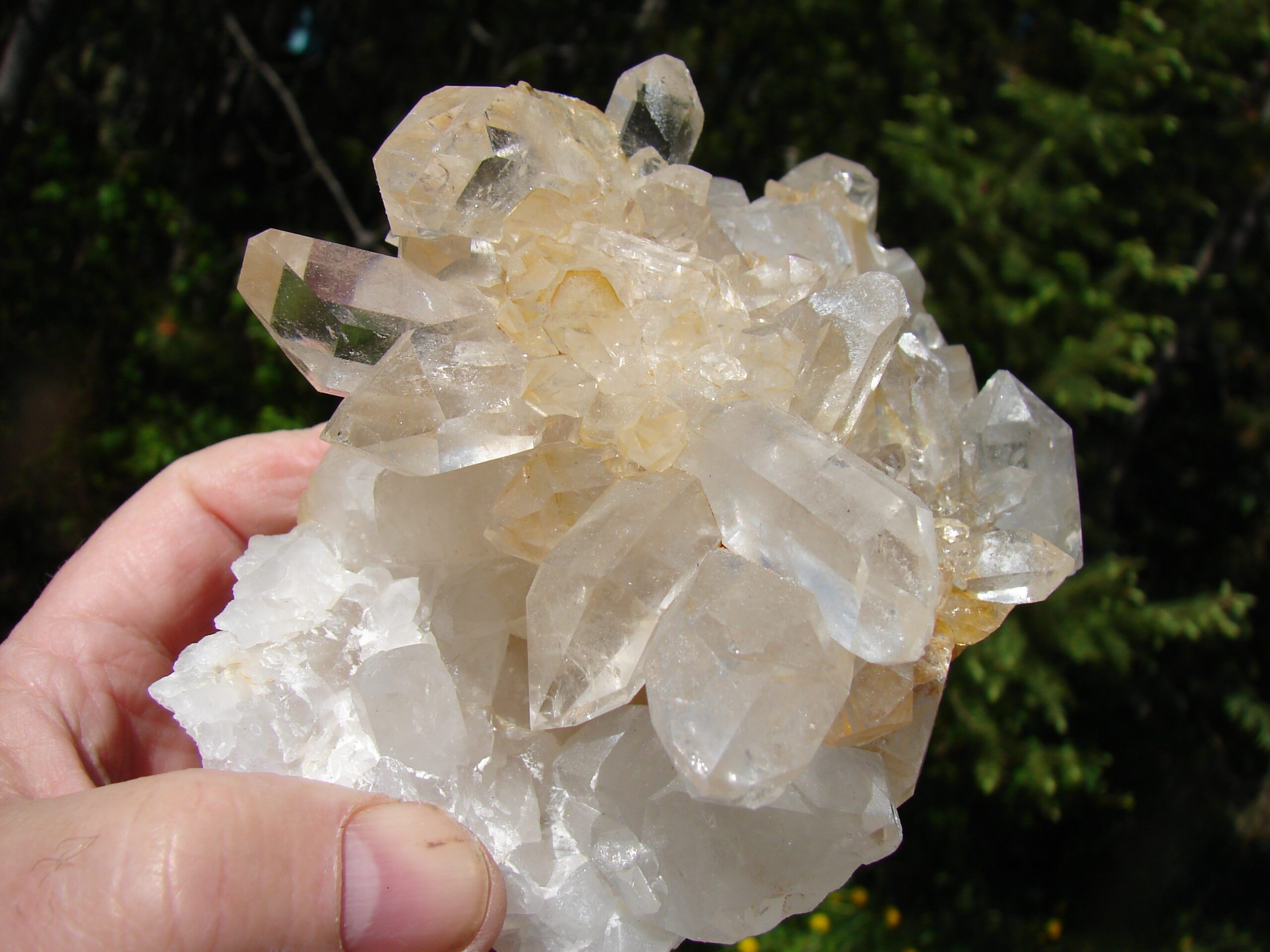 BEAUTIFUL CRYSTAL CLUSTER WITH LOVELY SOLID CLEAR POINTS WITH LOVELY DIRECTIONAL ENERGY