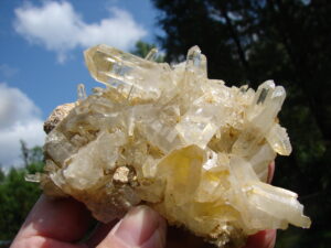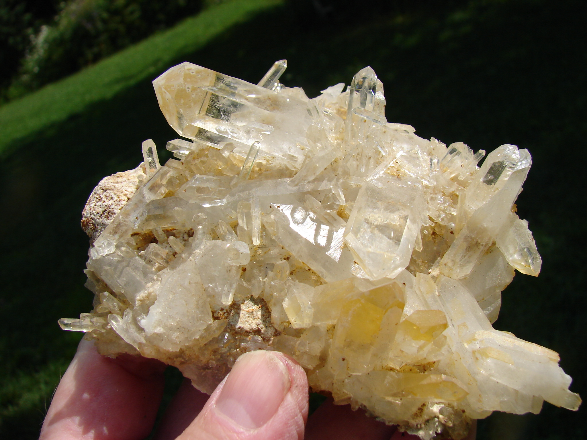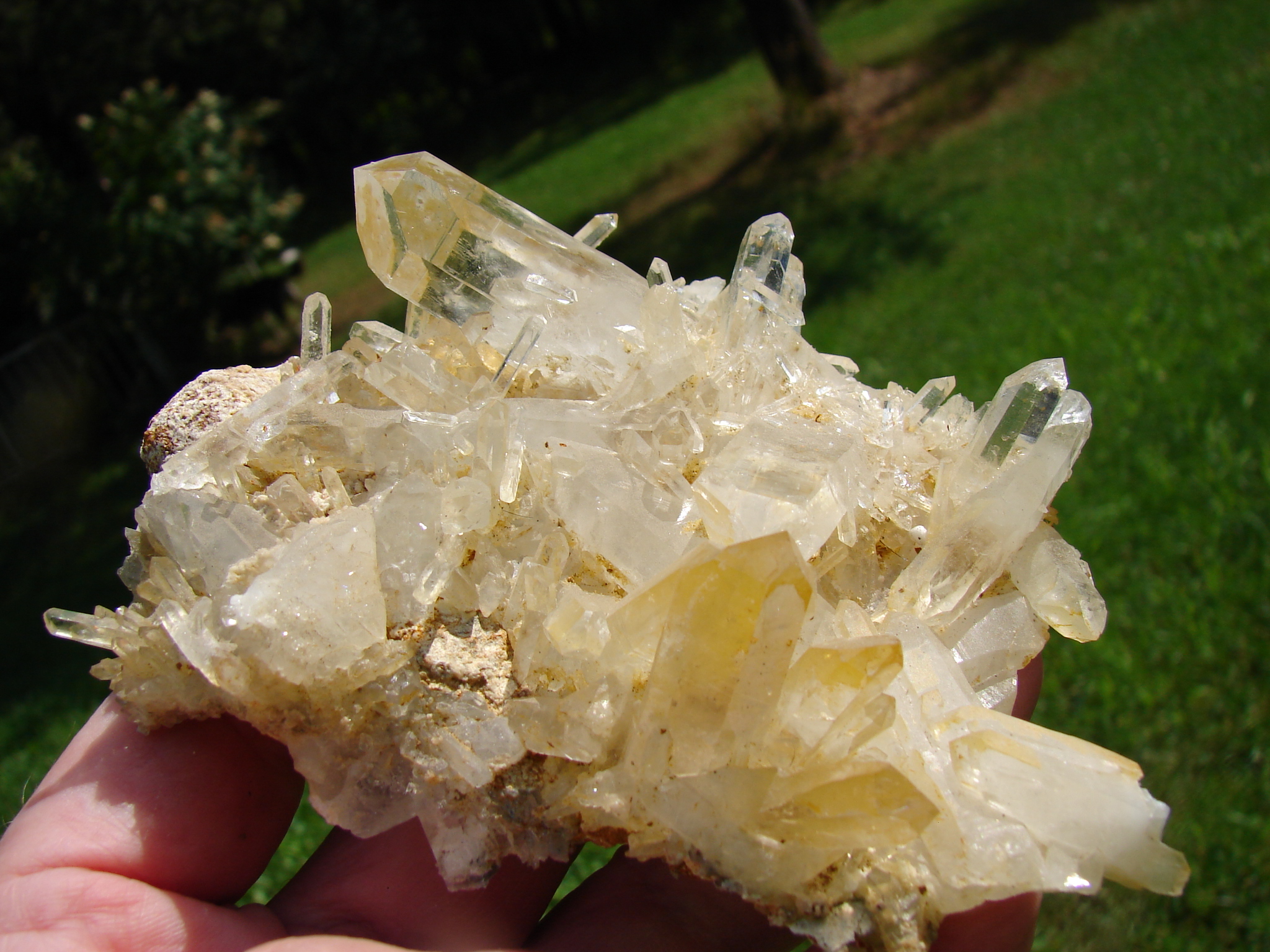 BEAUTIFUL SMALL LEMON QUARTZ CLUSTER WITH GORGEOUS CLEAR / YELLOW POINTS