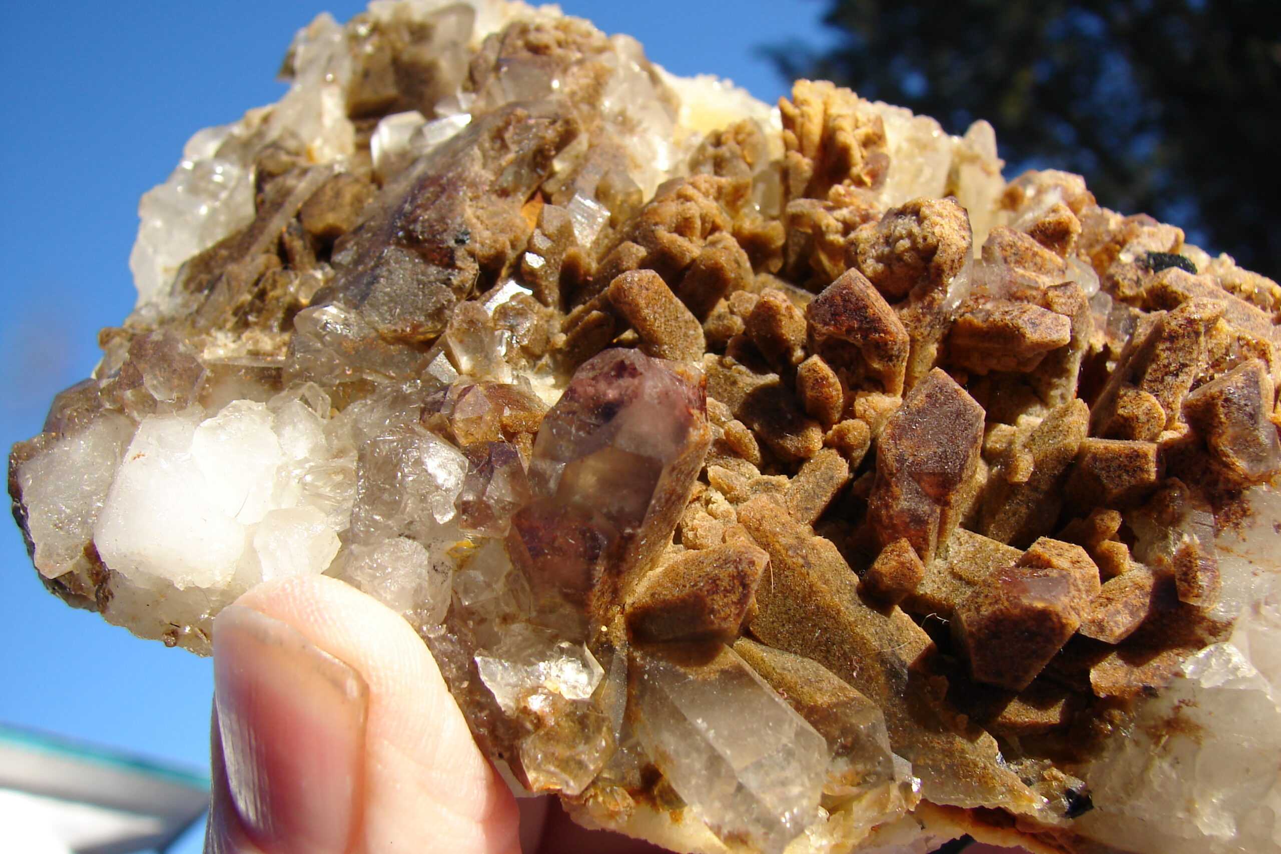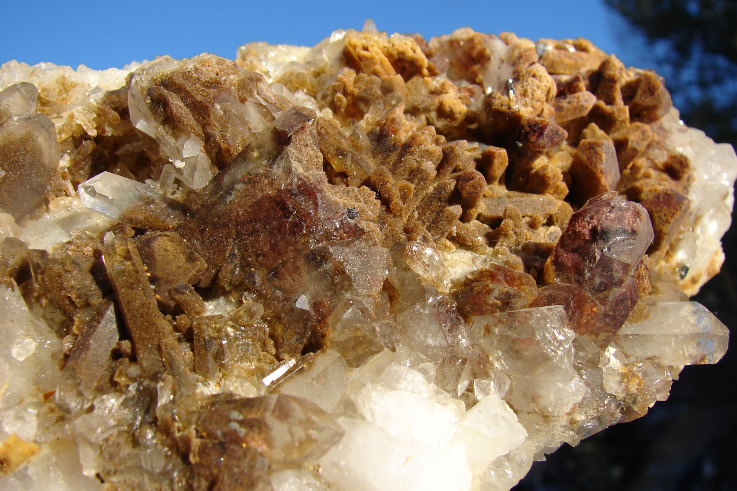BROWN PHANTON QUARTZ CRYSTAL CLUSTER ON MATRIX WITH CLEAR QUARTZ CRYSTALS