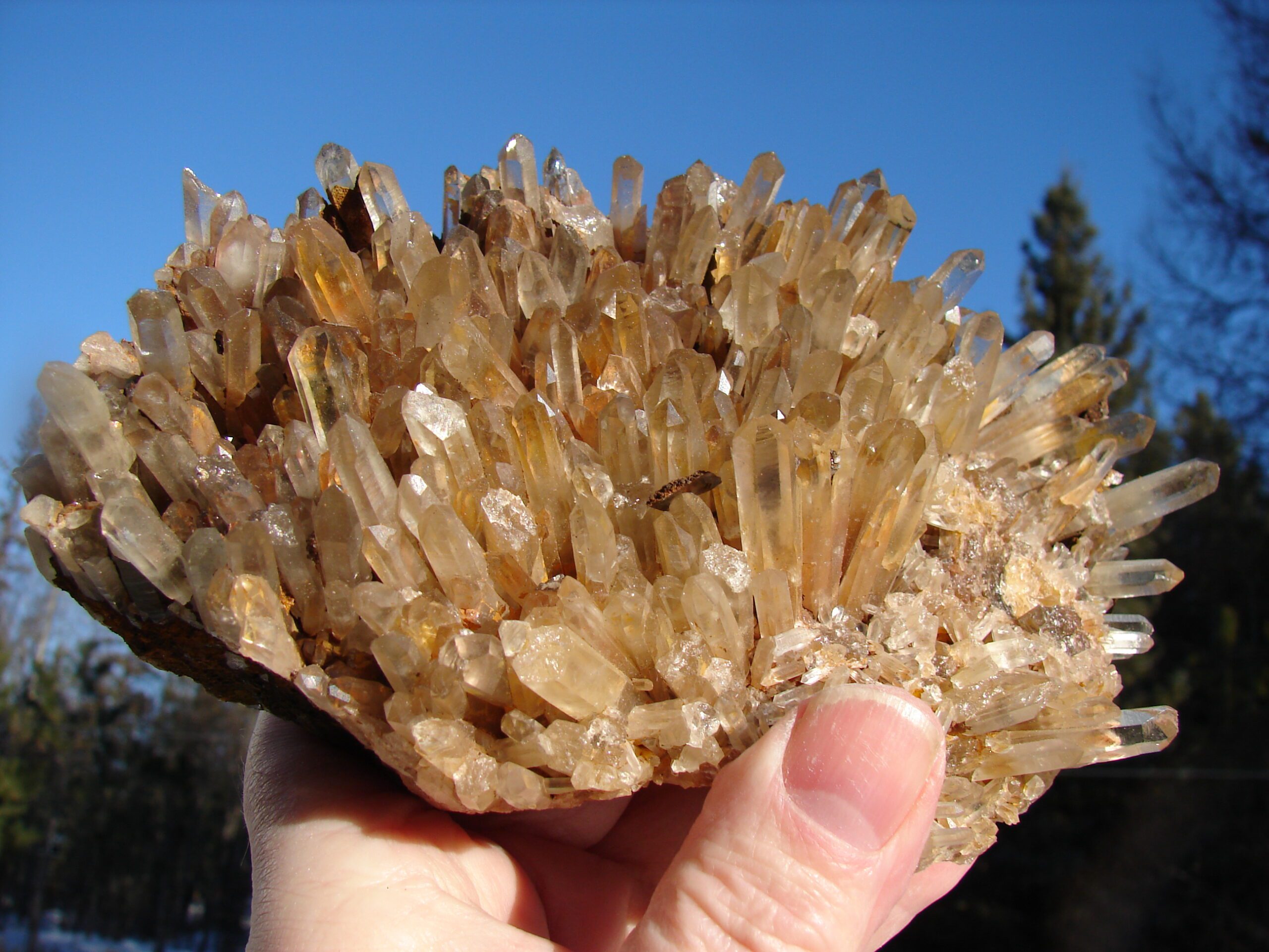 QUARTZ CLUSTER, SMALL ORANGE/CLEAR MINI POINTS