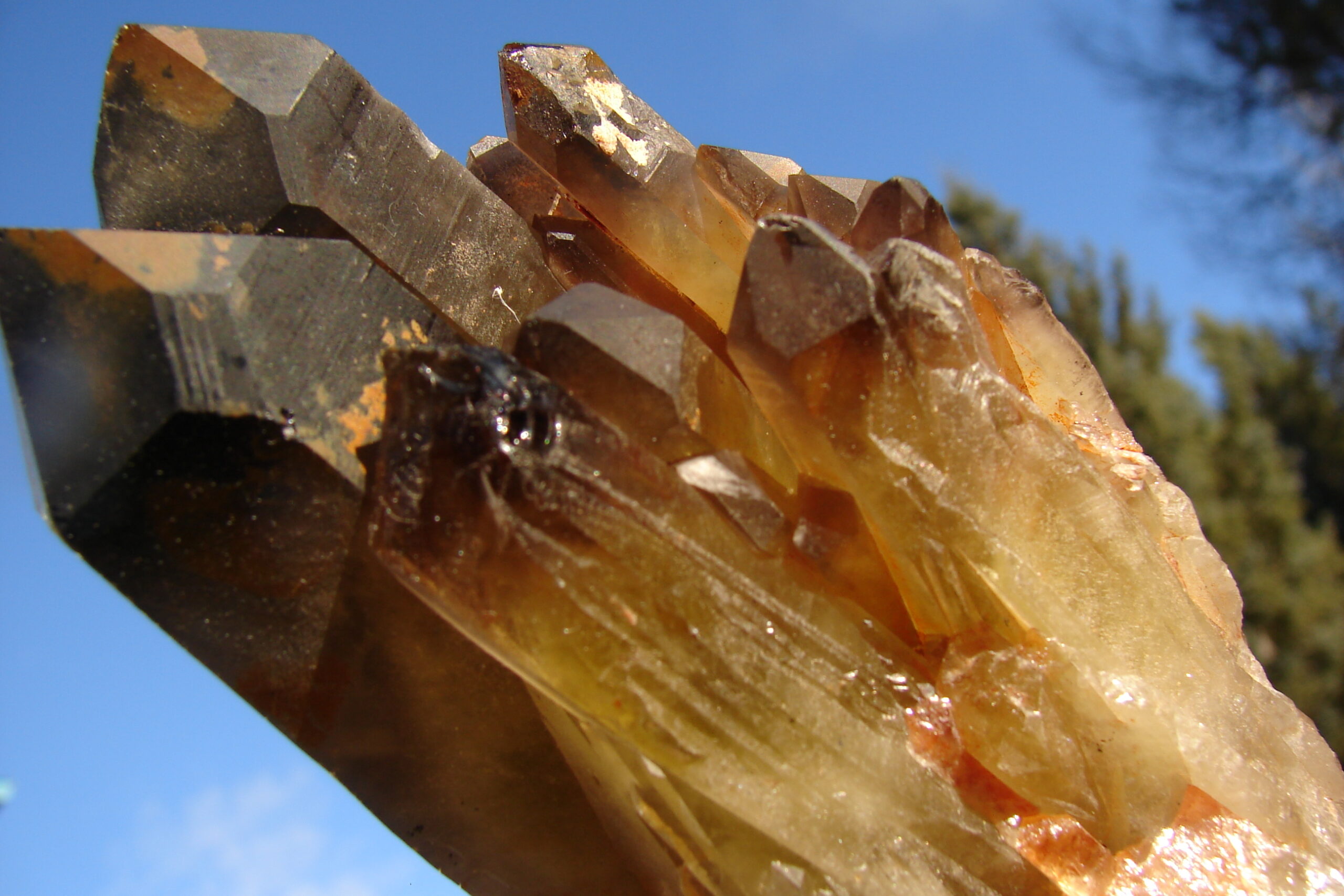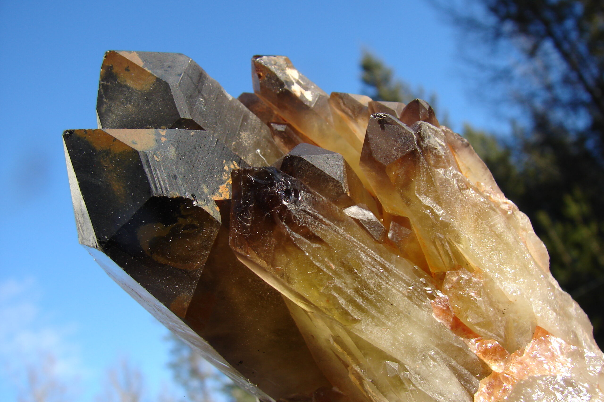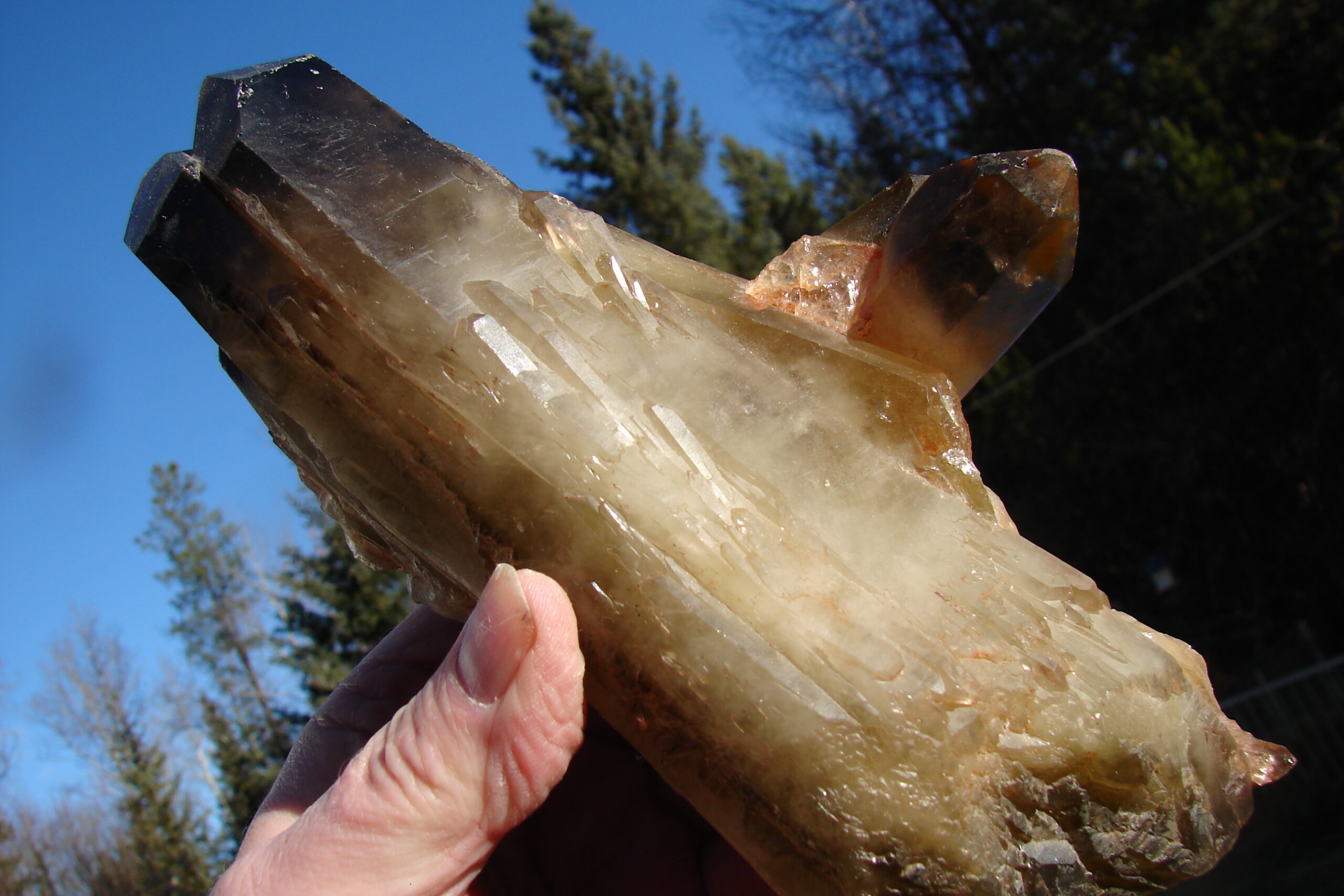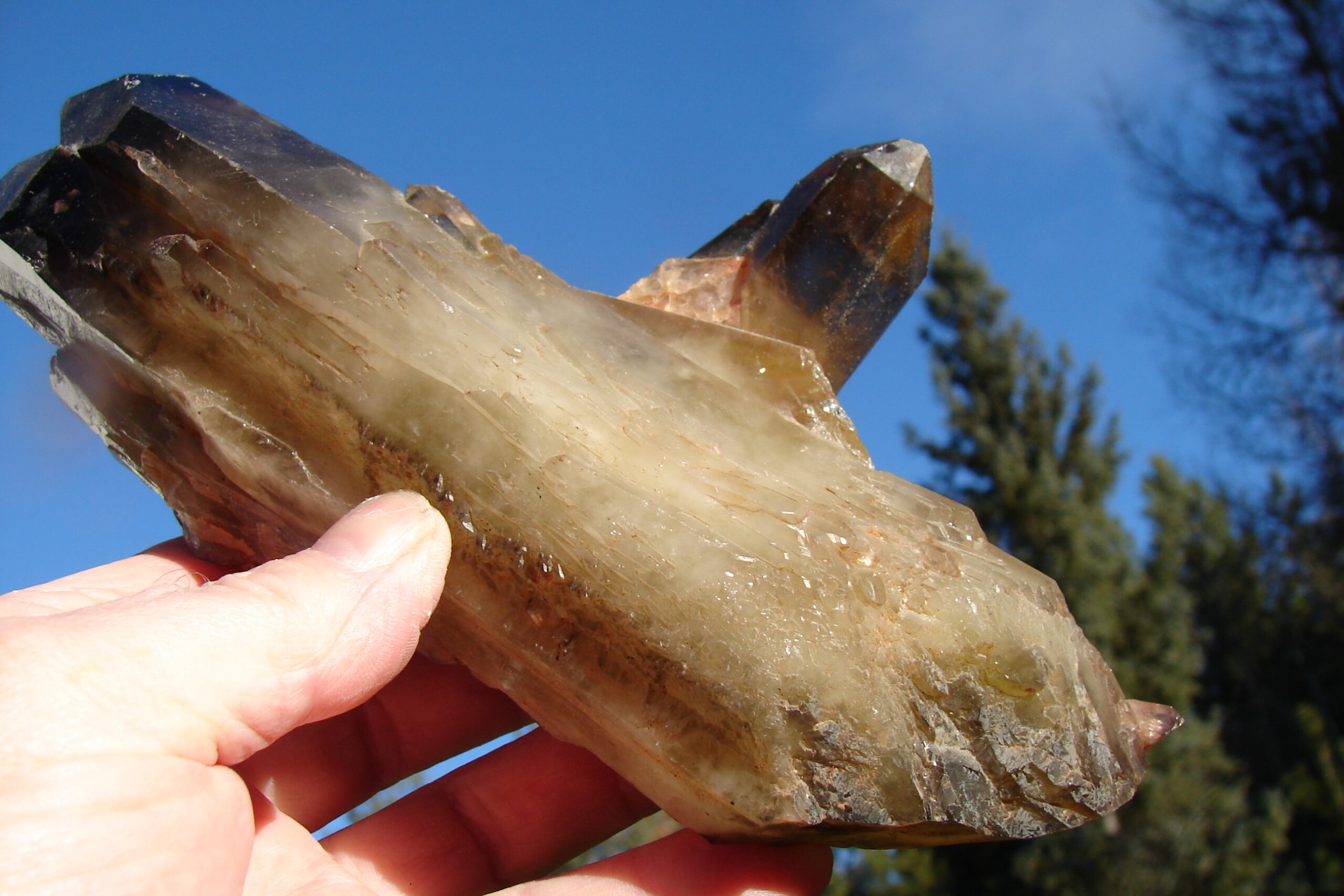 SMOKEY QUARTZ DOUBLE TERMINATED SELF HEALER WITH MULTIPLE FAMILY MEMBERS