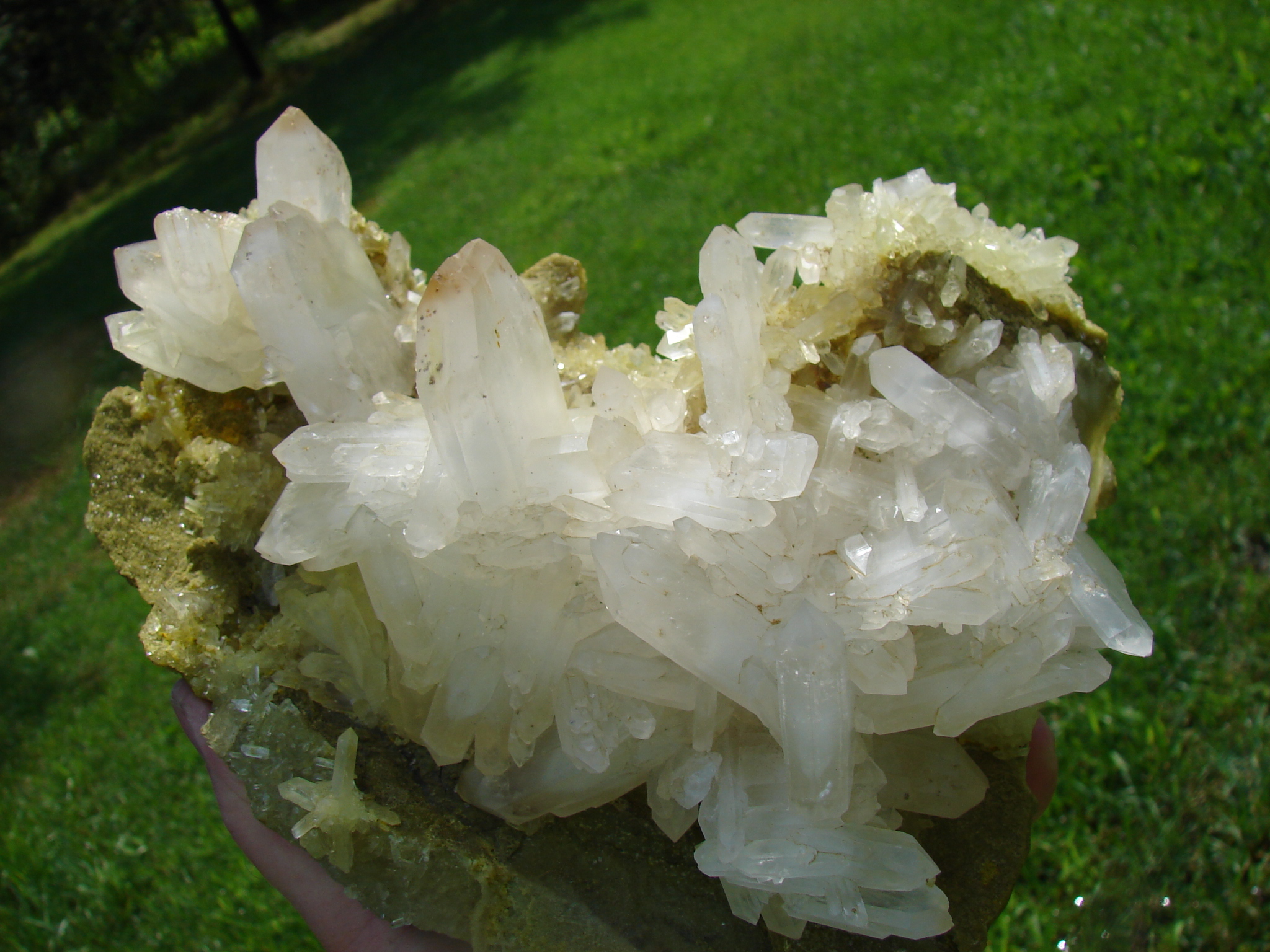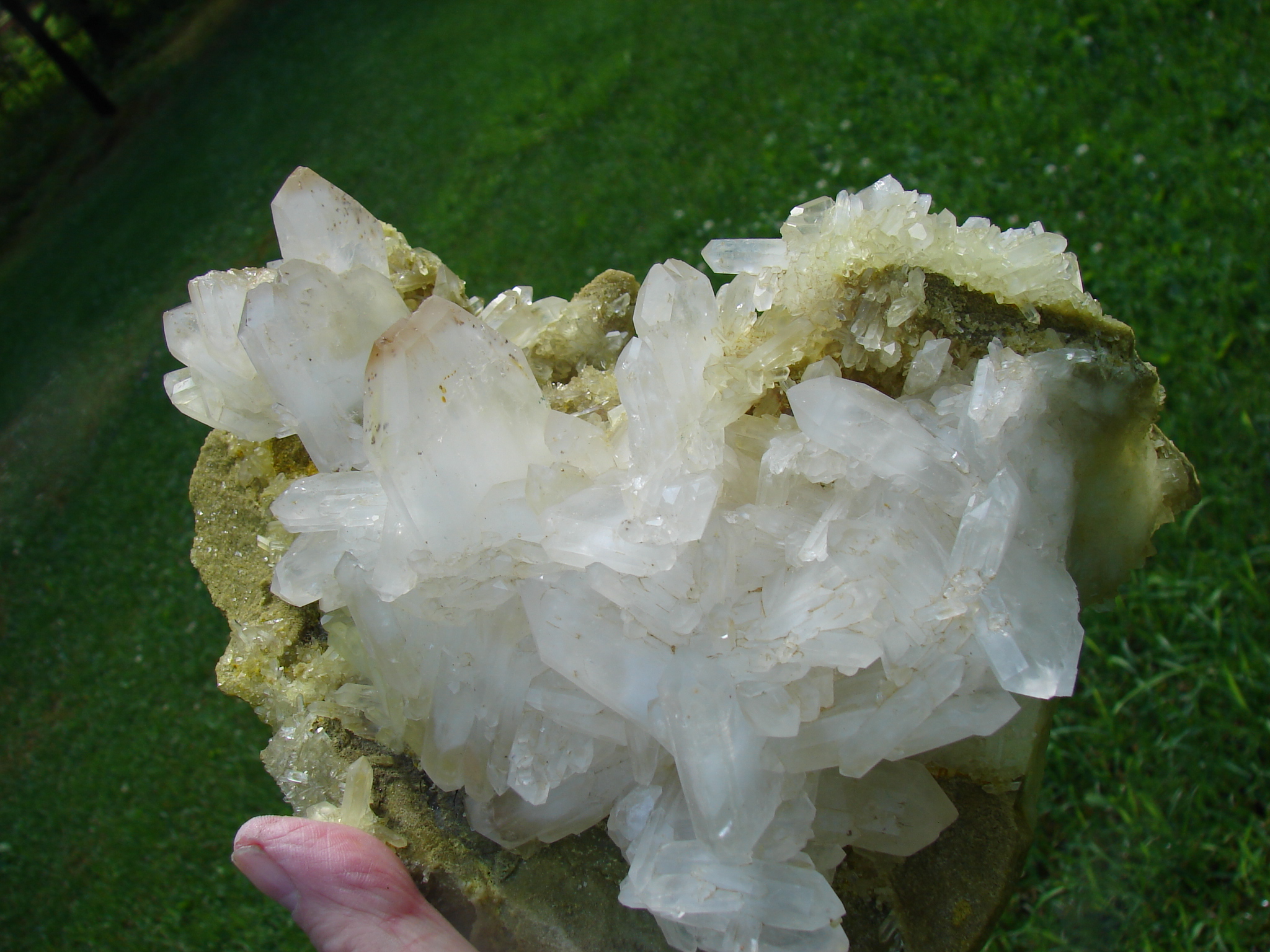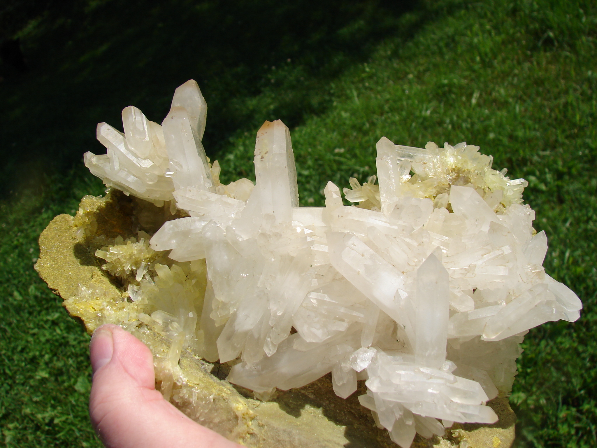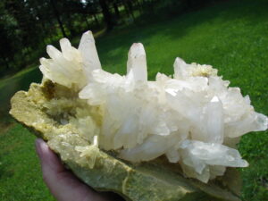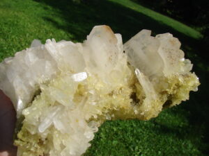 WHITE FADEN CLUSTERS ON A YELLOW /GREEN MATRIX.. VERY UNIQUE AND RARE SPECIMIN